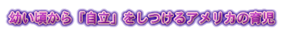 自立の面から言えば、確かにアメリカの子ども達の方が上だと思います。けれども精神的発達度を無視し、自立のみを要求される子どもにとっては、同時にとっても寂しい思いでいるということはよく聞かされました。このことから、その子ども子どもに応じて育てられることが一番いいことだと思うようになりました。